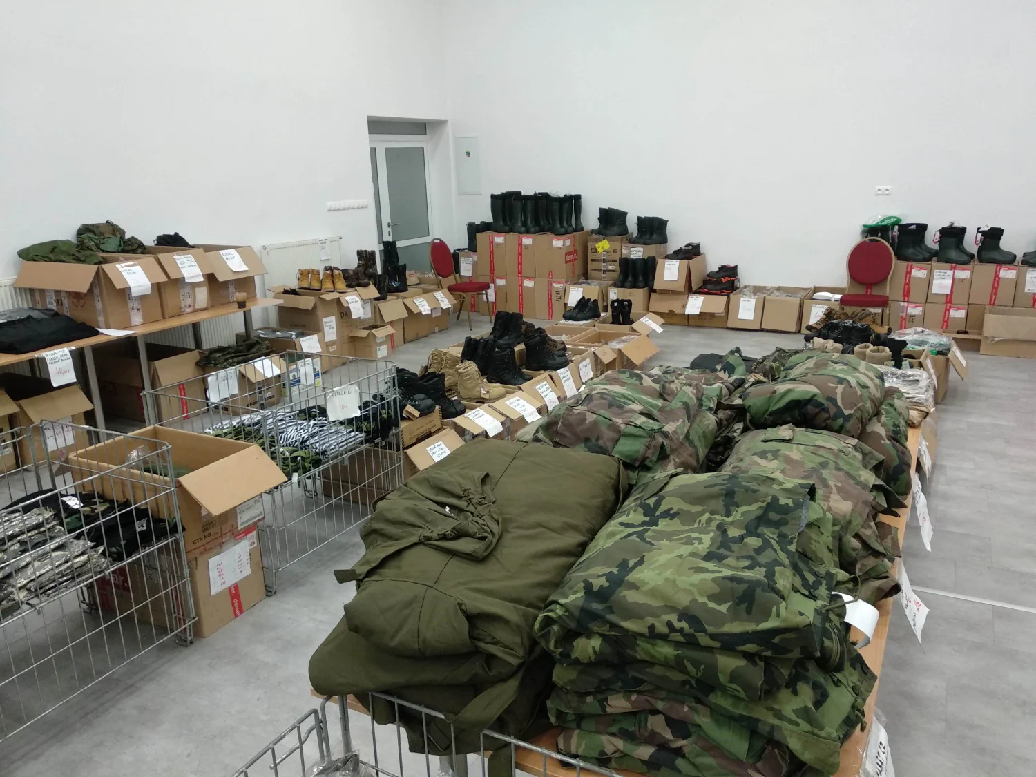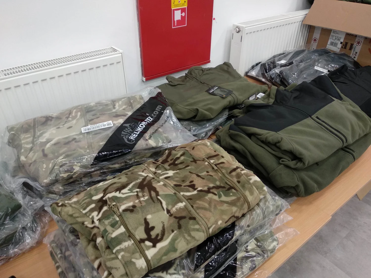 - vojenské bundy, nohavice, mikiny, tričká a košele