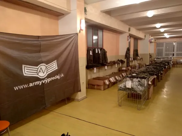 Na výpredaji bude pripravený výber armádneho tovaru z rôznych európskych armád. Veľká časť sortimentu pozostáva z originálneho vojenského vybavenia, ktoré je známe svojou vysokou odolnosťou a praktickým spracovaním.