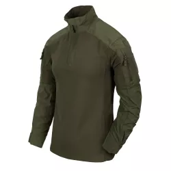 Taktické tričko s dlhým rukávom MCDU Combat je nátelník doplňujúci uniformu MBDU (Modern Battle Dress Uniform), ktorý sa nosí pod taktické vesty. Taktický nátelník je vyrobený z kvalitného ľahkého materiálu TopCool,ktorý je vysoko priedušný. Taktická košeľa MCDU Combat Shirt je anatomického strihu, ktorý je pohodlný s krátkym YKK zipsom v jeho hornej časti smerujúcim ku krku s chráničom brady. Ďalšie zipsy nájdeme na vreckách v bicepsovej časti spolu s velcro panelmi na ramenách umožňujúcich personalizáciu v podobe nášiviek. Rukávy na bojovom tričku majú regulovateľné manžety na suchý zips a sú vyrobené z odolného materiálu NyCo Ripstop, ktorý zabráňuje mechanickému poškodeniu. Tento materiál je rovnako použitý aj na golieri a ramennej časti. Ľahká taktická košeľa má zdvojený materiál na laktiach. Helikon-Tex MCDU Combat Shirt využijete pri nosení taktických, či balistických viest aj v teplom počasí.