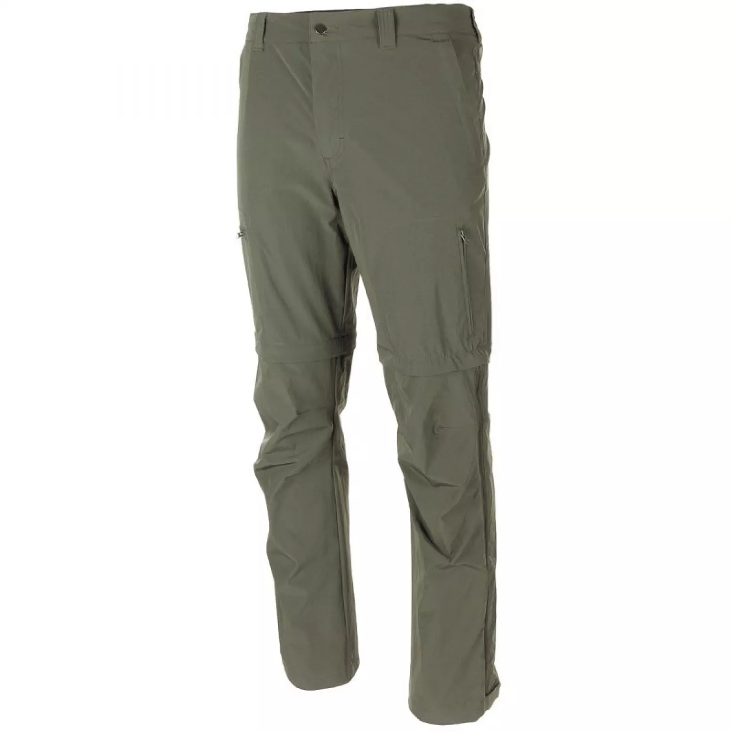Turistické nohavice RACHEL 2 v 1 od MFH sú prepracované nohavice vhodné na rôzne outdoorové aktivity. Trekové nohavice sú vyrobené zo zmesového materiálu 90 % nylon, 10 % elastan vďaka čomu sú nohavice pružné a pohodlné. Trekingové nohavice majú pružný pás vďaka čomu výborne sadnú na postavu. Nohavice sa zapínajú na džínsový gombík, poistný gombík a zips. Nohavice majú 2 klasické vrecká v páse uzatvorené zipsom a 2 kapsy na stehnách uzatvárané bočným zipsom. Na zadnej časti turistických nohavíc je jedna kapsa uzatvorená zipsom. Outdoorové nohavice majú profilované šitie na kolenách. Trekové nohavice je možné rýchlo skrátiť vďaka zipsom nad kolenami a bočným zipsom, ktoré úplne otvoria odnímateľnú časť tunelov - nohavice je možné skrátiť aj bez nutnosti vyzúvať topánok.