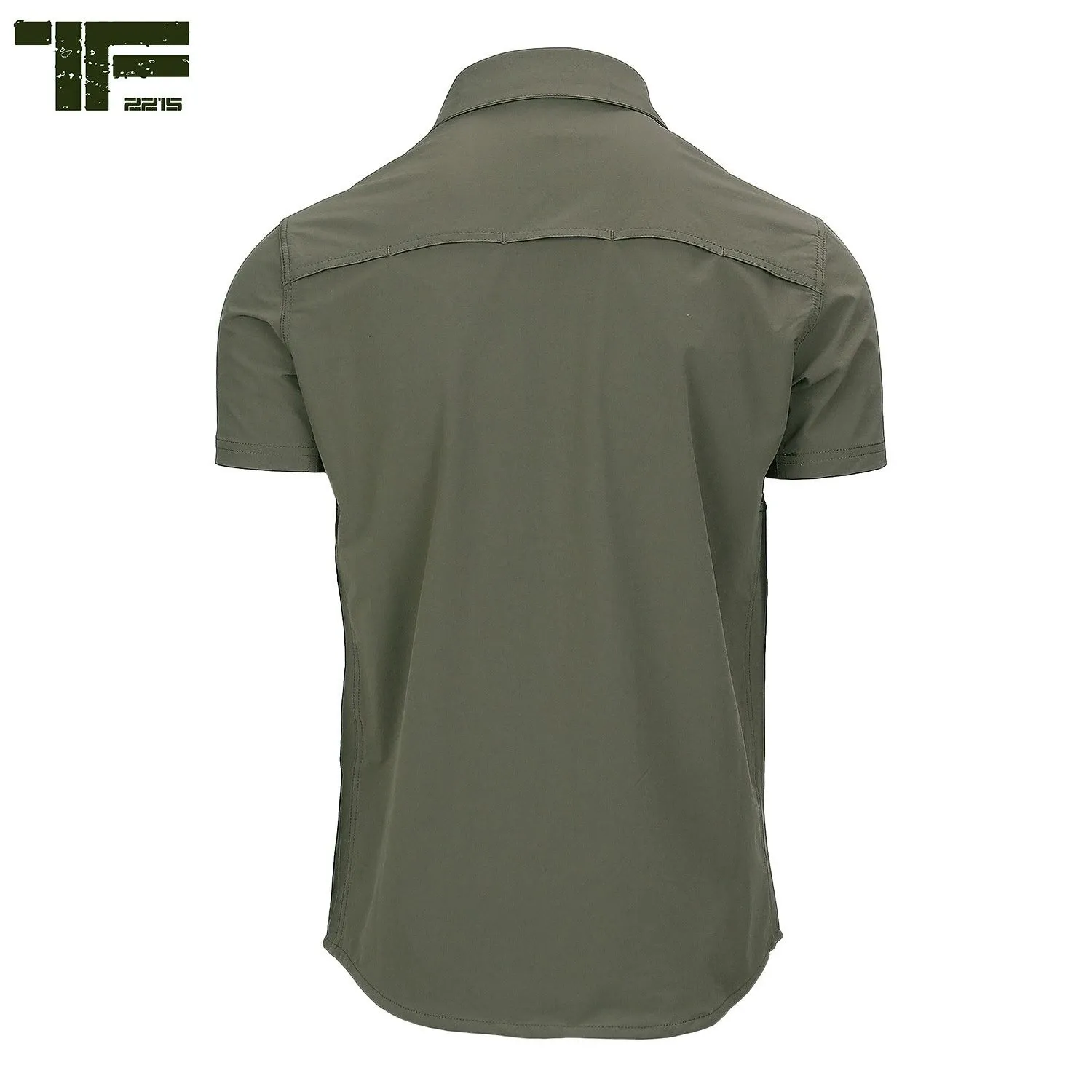 Košeľa s krátkym rukávom Echo Two Shirt od výrobcu TF-2215 je výbornou voľbou na nosenie v teplejšom počasí počas športových, taktických, ale aj rôznych outdoorových aktivít, či na bežné nosenie do mesta. Multifunkčná krátka košeľa Echo Two je vyrobená z 2-vrstvovej tkaniny kombinácie nylonu a elastanu s teflónovou úpravou, vďaka ktorým je košeľa veľmi pohodlná na nosenie a má rýchloschnúce vlastnosti. Strečová tkanina je pružná v 4 smeroch a sieťovaná podšívka na chrbte poskytuje košeli Echo Two Shirt veľmi dobrú priedušnosť. Zapínanie pomocou gombíkov na krátkej košeli vedie až ku klasickému golieru a krátka košeľa Echo Two disponuje aj náprsným vreckom na zips a pútkom pre okuliare. Na bočných stranách a zadnej časti multifunkčnej košele sa nachádzajú vetracie otvory, ktoré oceníš najmä pri pohybe.